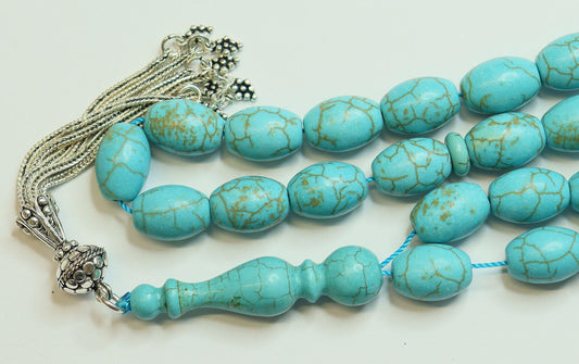 Turquoise & Sterling Tesbih Rosary Barrel Shape Beads - Rare Collector's Choice