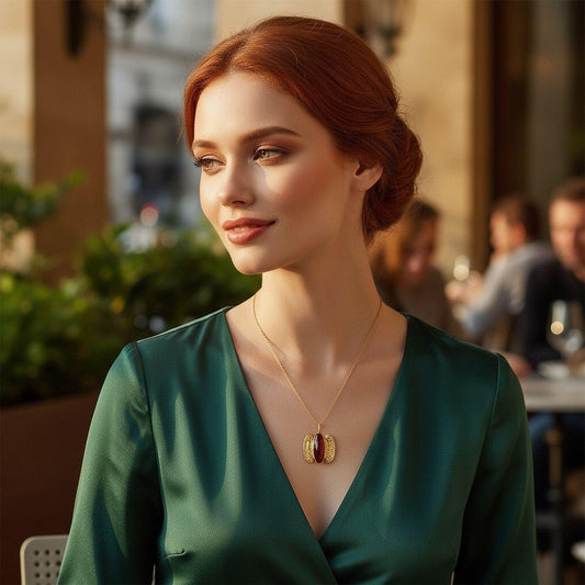 Isle of Crete Earrings and Pendant Gold and Carnelian by The Swan Collection