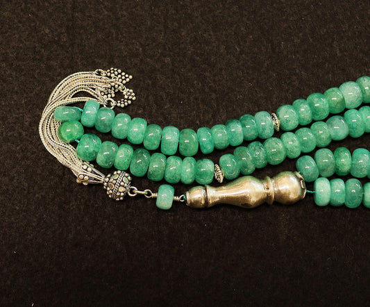 Tesbih Worry Beads 66 Rondelle Genuine Emerald Beads & Sterling Silver - Collector's
