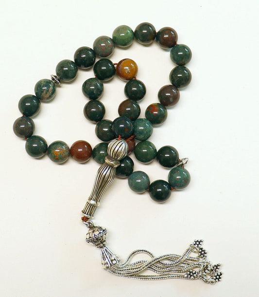 Luxury Tesbih Prayer Beads AA Grade Round Bloodstone & Sterling Silver - Top Quality - Collector's