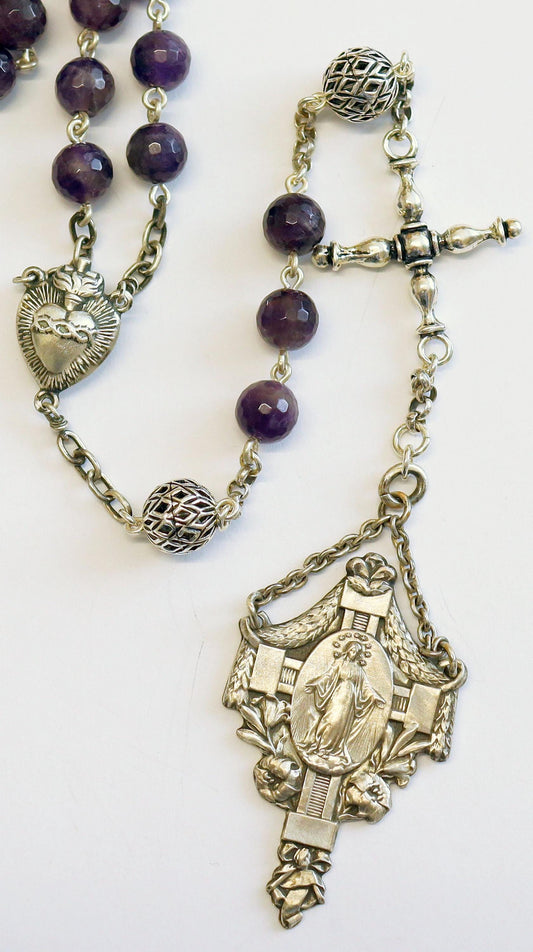 Antique Catholic Rosary Amethyst and Sterling Early 20th Cent- Marian Congregation XX Rarity