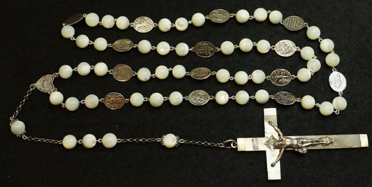 Stations of the Cross Rosary all Vintage Mother Of Pearl w 19th Cent Medals and Art Nouveau Crucifix ALL Sterling Silver Unique